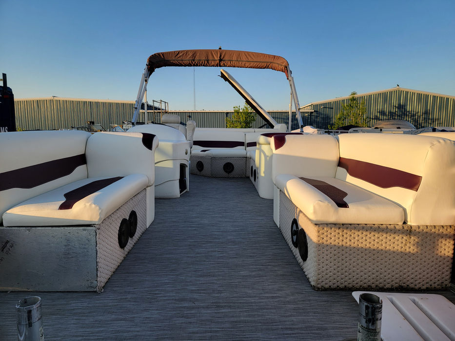 The Tri-Toon 2 is a high-performance 22ft pontoon built for speed, stability, and comfort. With seating for up to 15 passengers and a 150 HP motor, this boat is perfect for cruising, watersports, and enjoying the lake with family and friends.
